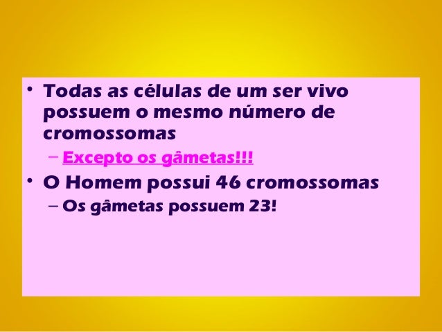 8. 8. Cromossomas• Todas as células de um ser vivopossuem o mesmo número decromossomas– Excepto os gâmetas!!!• O Homem possui 46 cromossomas– Os gâmetas possuem 23!