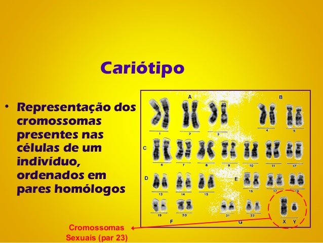 9. 9. Cariótipo• Representação doscromossomaspresentes nascélulas de umindivíduo,ordenados empares homólogosCromossomasSexuais (par 23)