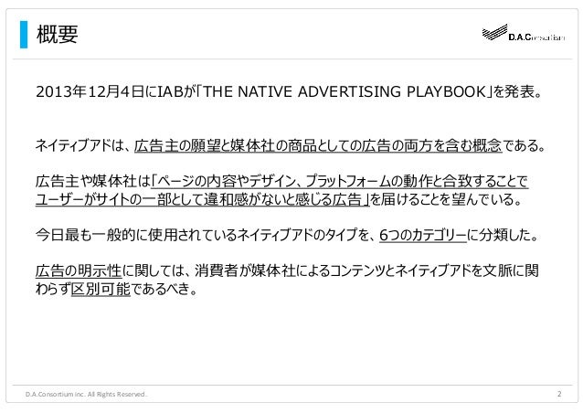 2013年12月4日にIABが「THE NATIVE ADVERTISING PLAYBOOK」を発表。