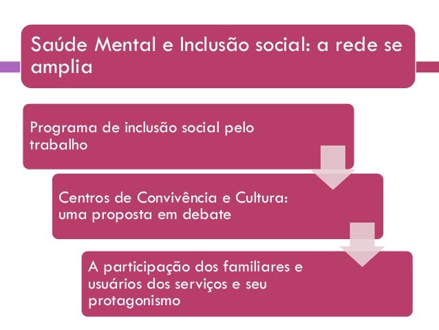 31. 31. Saúde Mental e Inclusão social: a rede se amplia Programa de inclusão social pelo trabalho Centros de Convivência e Cultura: uma proposta em debate A participação dos familiares e usuários dos serviços e seu protagonismo
