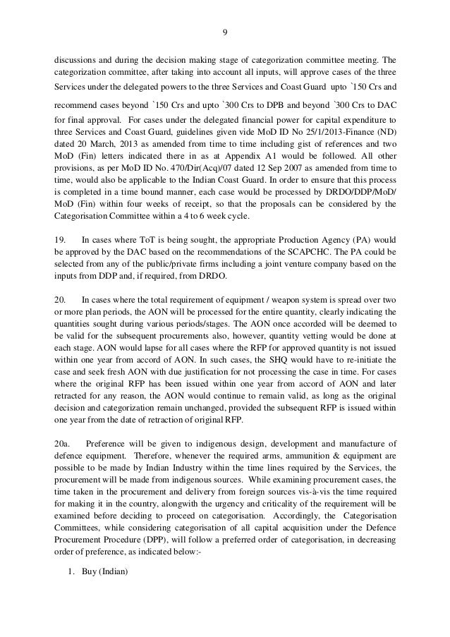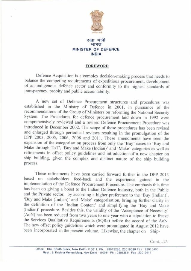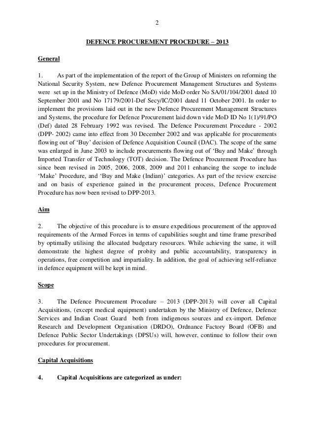 The Indian MoD released the latest version of the Defense Procurement Procedures 2013 on 01st June.