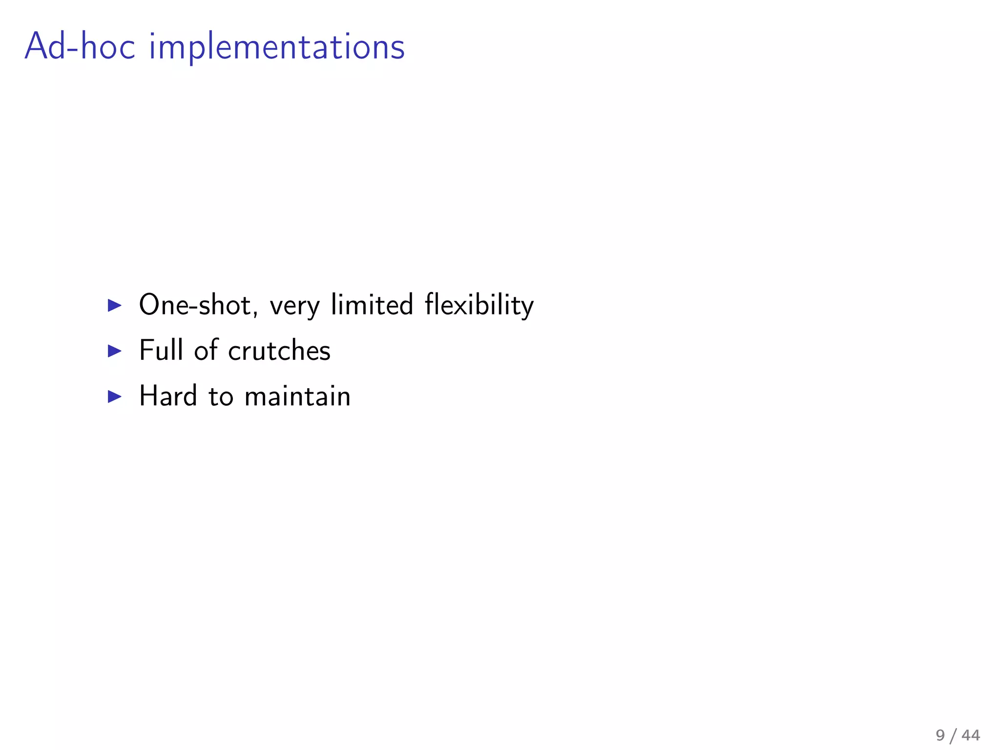 All kinds of clumsy UIs, spaghetti code, wasted dedicated scripter's hours and other unpleasantries stem from that problem.