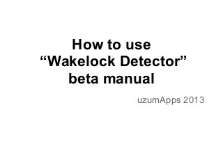Presentation which presents Manual and Use cases for Wakelock Detector.