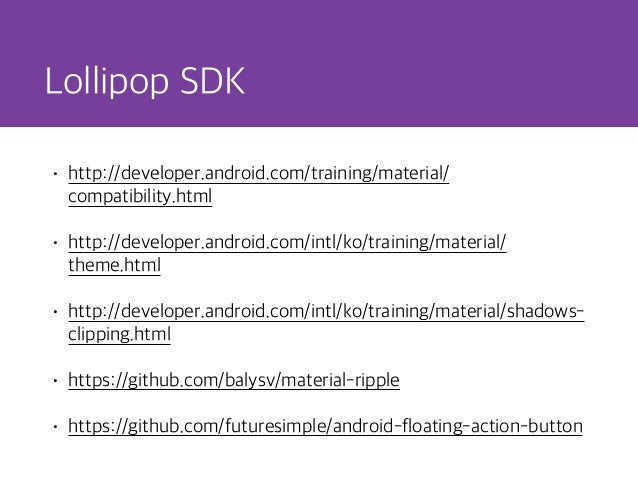 Android 5.0 Lollipop의 새로운 API와 Material Designd에 대한 소개입니다.