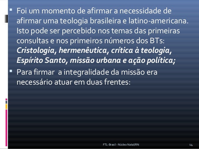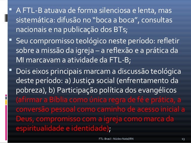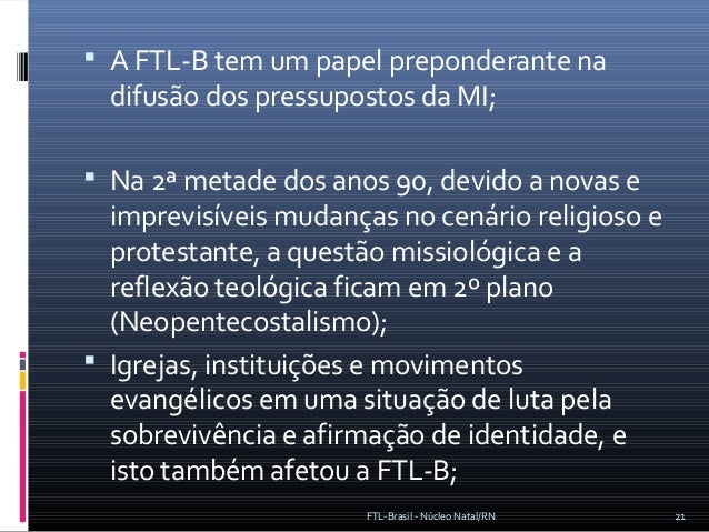 Estudo histórico-teológico da caminhada da FTL - Brasil entre as décadas de 70 a 90.