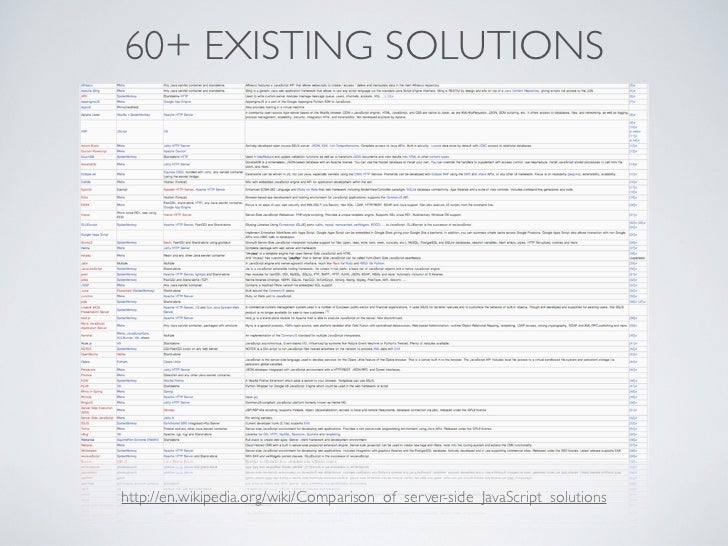 12. 12. 60+ EXISTING SOLUTIONShttp://en.wikipedia.org/wiki/Comparison_of_server-side_JavaScript_solutions