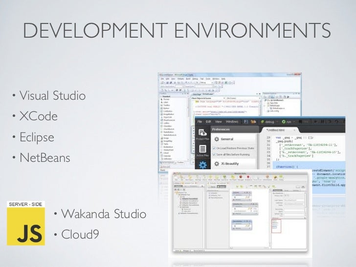 16. 16. DEVELOPMENT ENVIRONMENTS• Visual Studio• XCode• Eclipse• NetBeans • Wakanda Studio • Cloud9