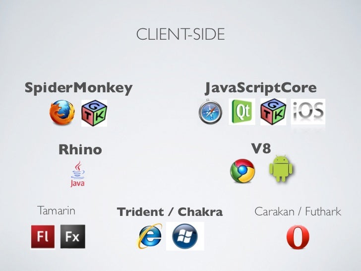 23. 23. CLIENT-SIDESpiderMonkey JavaScriptCore Rhino V8 Tamarin Trident / Chakra Carakan / Futhark