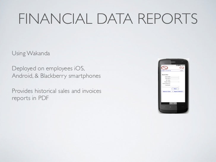 50. 50. FINANCIAL DATA REPORTSUsing WakandaDeployed on employees iOS,Android, & Blackberry smartphonesProvides historical sales and invoicesreports in PDF