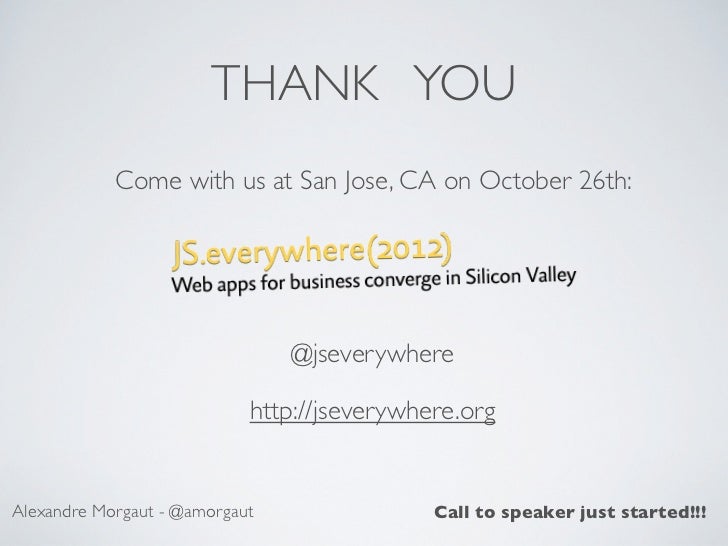 51. 51. THANK YOU Come with us at San Jose, CA on October 26th: @jseverywhere http://jseverywhere.orgAlexandre Morgaut - @amorgaut Call to speaker just started!!!