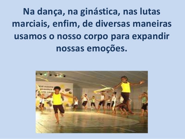 19. 19. Na dança, na ginástica, nas lutas marciais, enfim, de diversas maneiras usamos o nosso corpo para expandir nossas emoções.