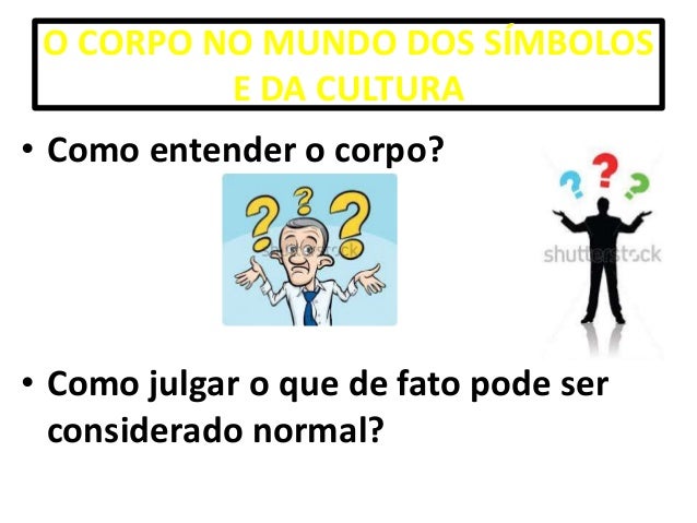 22. 22. O CORPO NO MUNDO DOS SÍMBOLOS E DA CULTURA • Como entender o corpo? • Como julgar o que de fato pode ser considerado normal?