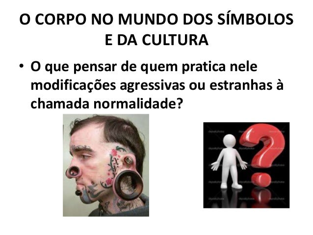 23. 23. O CORPO NO MUNDO DOS SÍMBOLOS E DA CULTURA • O que pensar de quem pratica nele modificações agressivas ou estranhas à chamada normalidade?