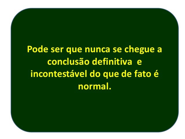 24. 24. Pode ser que nunca se chegue a conclusão definitiva e incontestável do que de fato é normal.