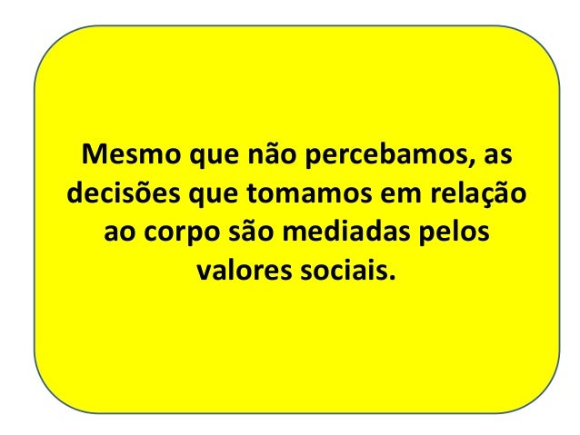 26. 26. Mesmo que não percebamos, as decisões que tomamos em relação ao corpo são mediadas pelos valores sociais.