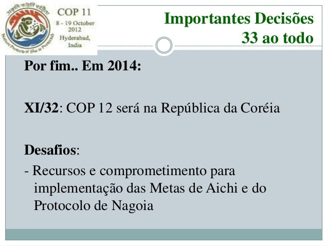 Participação da SMA na COP-11, na Índia, e principais decisões tomadas na Conferência.