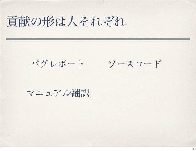 4. 4. 貢献の形は人それぞれ バグレポート ソースコード マニュアル翻訳 3