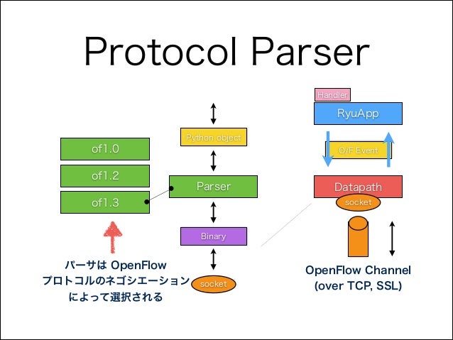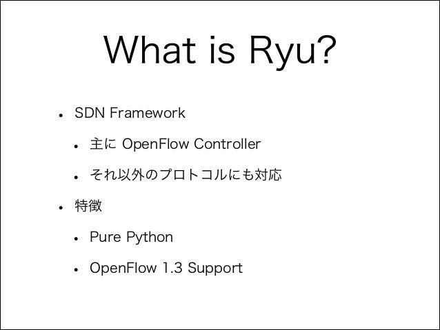 Pure Python で書かれた SDN Framework (OpenFlow コントローラ) Ryu の設計資料。