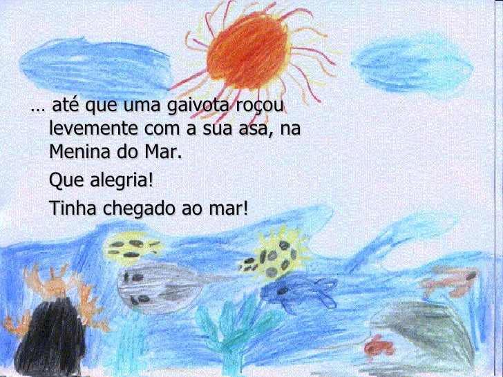 <ul><li>…  até que uma gaivota roçou levemente com a sua asa, na Menina do Mar. </li></ul><ul><li>Que alegria! </li></ul><...