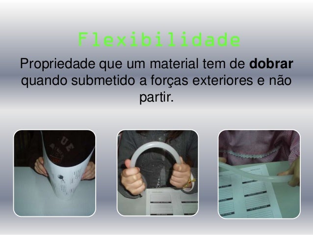10. 10. Propriedade que um material tem de dobrar quando submetido a forças exteriores e não partir. Flexibilidade