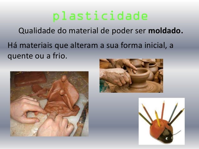 11. 11. Qualidade do material de poder ser moldado. plasticidade Há materiais que alteram a sua forma inicial, a quente ou a frio.