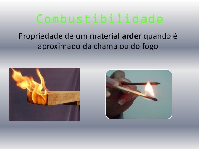 17. 17. Combustibilidade Propriedade de um material arder quando é aproximado da chama ou do fogo