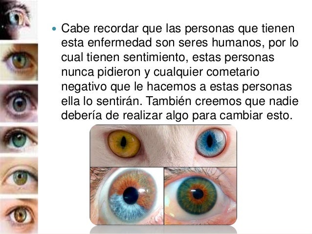 8. 8.  Así que, si encuentras a una persona con este caso, admíralo, ya que es un fenómeno que no ocurre normalmente en seres humanos. Tal vez ahora pensaras en decirle “que bellos ojos tiene esa persona”.