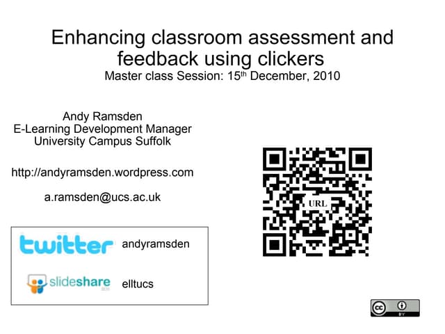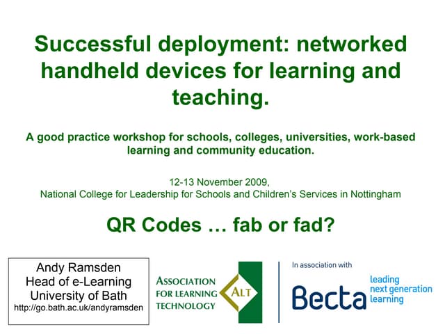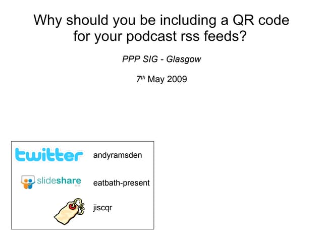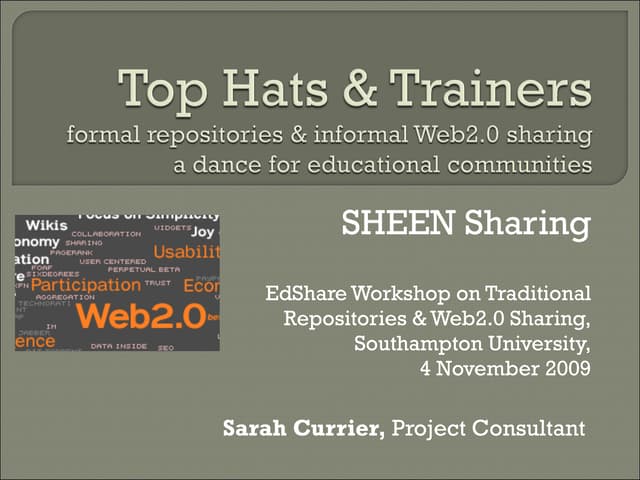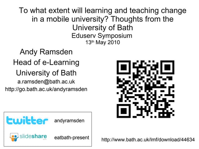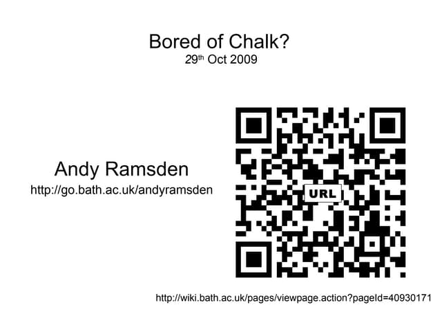 This is the output presentation from the workshop I ran at the IWMW 2008. This version includes captures of audience response, SMS responses and word clouds