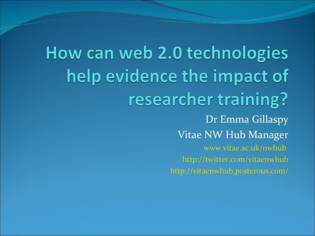 you 07624 804921 Who in the room would like to share their experiences of adopting a web 2.0 approach to trying to enhance team cohesion? What have you done, and what lessons have you learnt?
