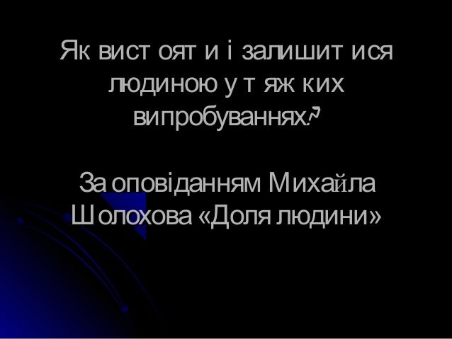 1. 1. Як вист оят и і залишит исяЯк вист оят и і залишит ися людиною у т яж кихлюдиною у т яж ких випробуванняхвипробуваннях?? Заоповіданням МихаЗаоповіданням Михаййлала Шолохова«Доля людини»Шолохова«Доля людини»