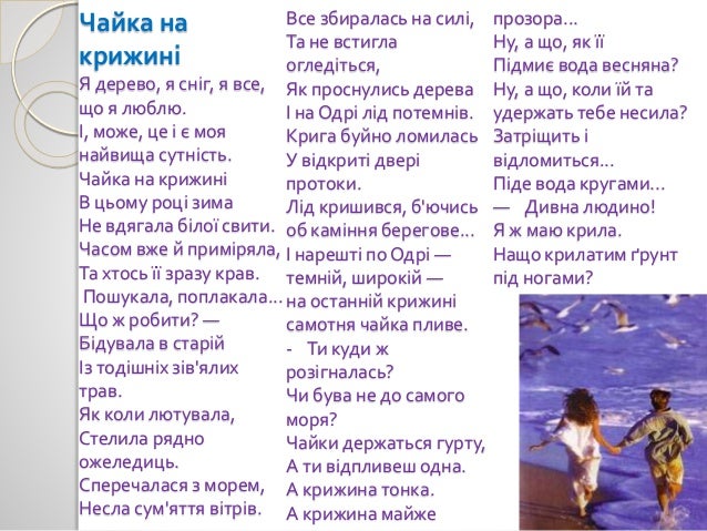1. 1. Ліна Костенко. «Чайка на крижині», «Крила»