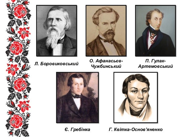 14. 14. Л. Боровиковський О. Афанасьєв- Чужбинський П. Гулак- Артемовський Є. Гребінка Г. Квітка-Основ’яненко