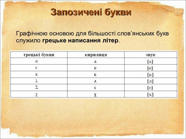 23. 23. Запозичені буквиЗапозичені букви Графічною основою для більшості слов’янських букв служило грецьке написання літер.
