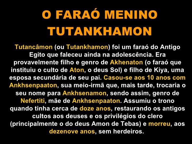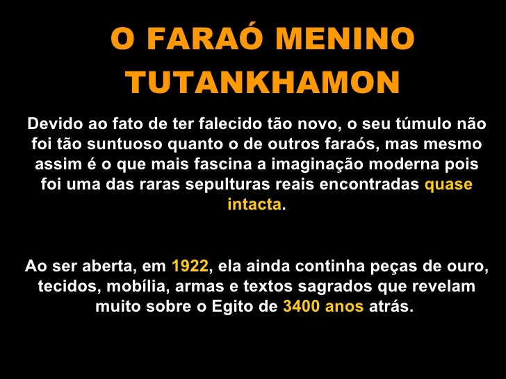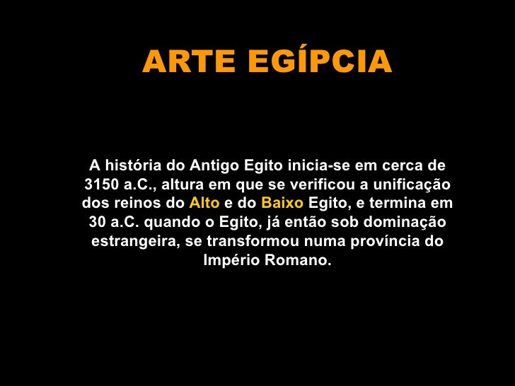 Aula sobre arte egípcia, dividida em 2 partes (maioria imagens, sem texto explicativo). Neste arquivo, parte com Tutankhamon.