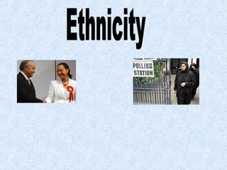 9. 9. Ethnicity• The ethnic vote in the UK has tended to heavily favour the Labour Party (average 80% of black & Asian vote since 1974).• This part of electorate becomes more important to parties as the immigrant population increases• Linked to social class – many immigrants live in working class urban environments• Labour Party has generally been more pro-immigration & welfare• 2005 – decrease in vote for Labour, especially amongst Muslims because of Iraq war – impact inner city areas e.g. Bethnel Green & Bow elected Respect Party