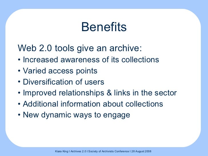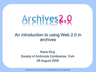 An introduction to using Web 2.0 in archives Kiara King Society of Archivists Conference, York 28 August 2008