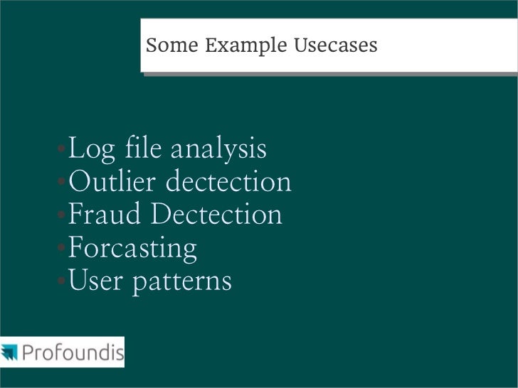 23. 23. Some Example Usecases Some Example Usecases ● Log file analysis ● Outlier dectection ● Fraud Dectection ● Forcasting ● User patterns