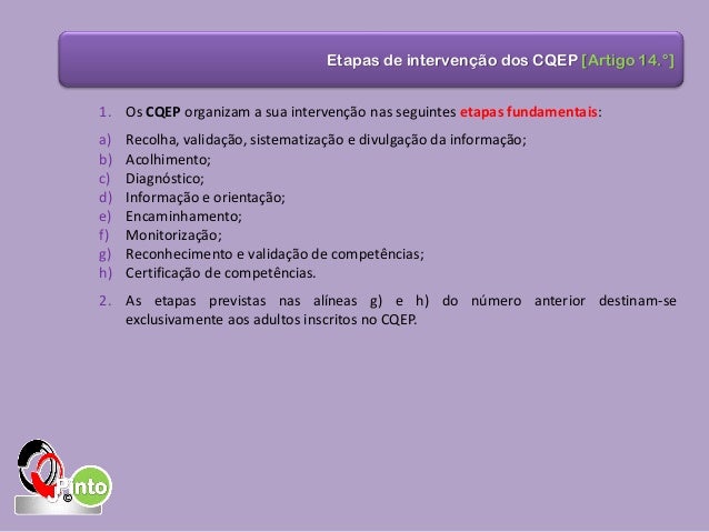 Cqep_Centros para a Qualificação e o Ensino Profissional, Etapas de intervenção dos CQEP, Portaria n.º 135-A/2013
