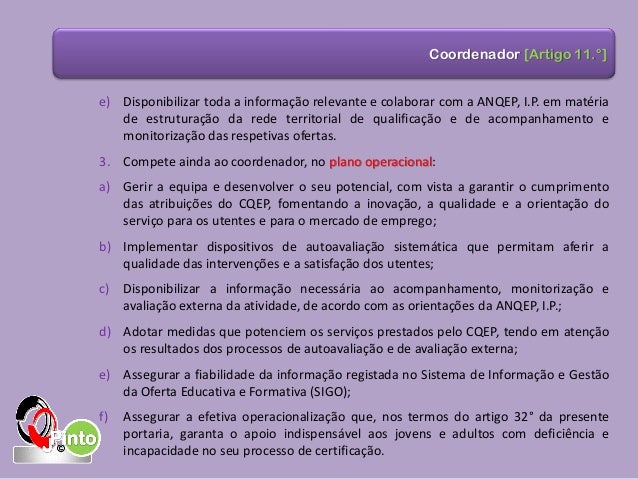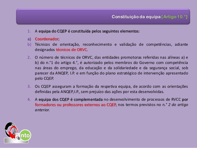 Constituição e funções da equipa dos Centros para a Qualificação e o Ensino Profissional