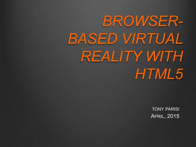 1. 1. TONY PARISI OCTOBER, 2015 AN INTRODUCTION TO WEBVR