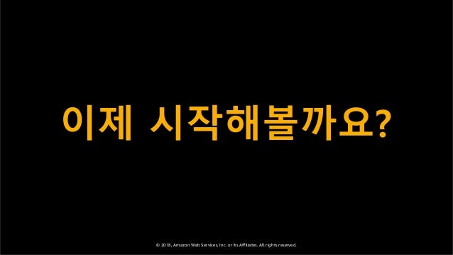 77. 77. © 2018, Amazon Web Services, Inc. or Its Affiliates. All rights reserved. 본 강연이 끝난 후 AWS 프리 티어 체험하기: aws.amazon.com/ko/free/