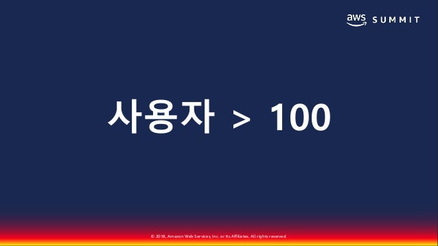 21. 21. © 2018, Amazon Web Services, Inc. or Its Affiliates. All rights reserved. 사용자 > 100