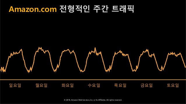 42. 42. © 2018, Amazon Web Services, Inc. or Its Affiliates. All rights reserved. 일요일 월요일 화요일 수요일 목요일 금요일 토요일 Amazon.com 전형적인 주간 트래픽
