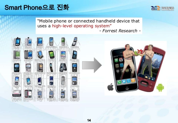 14. 14. Smart Phone으로 진화<br />“Mobile phone or connected handheld device that <br />uses a high-level operating system”<br />- Forrest Research -<br />