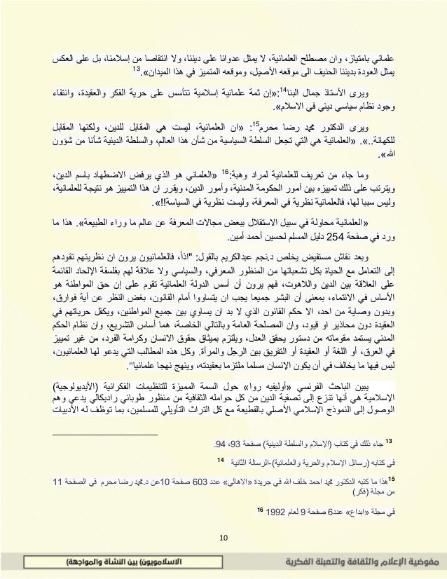 ومن هنا فإن إطلاق صفة(الإسلام السياسي) أو (الإسلام الشعبي) أو (الاسلام الرسمي) أو (الاسلام السلفي) أو (الاسلام الاخواني) أو(الارهاب الاسلامي) وغيرها من المسميات والتوصيفات على ذات ]الاسلام[ هي محاولة لتجزيء الإسلام وتشويهه، ربما تكون عند البعض من غير قصد، وعند آخرين مقصودة بحيث لم نجد مثيلا لها عند توصيف الأحداث في الديانات الأخرى.