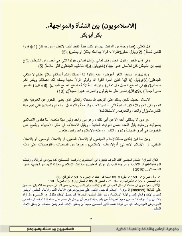 [1] كان العنوان "الاسلام السياسي" فقام المؤلف بتغييره الى الاسلامويون لرفضه المصطلح، كما يبين في الورقة، وارتبطت الورقة بالمتغيرات الاقليمية، ولمراجعة كتاب بكر أبوبكر المعنون:أوعية الفكر الاسلاموي محاولة للفهم، دار الجندي، القدس، الطبعة الاولى، 2016))