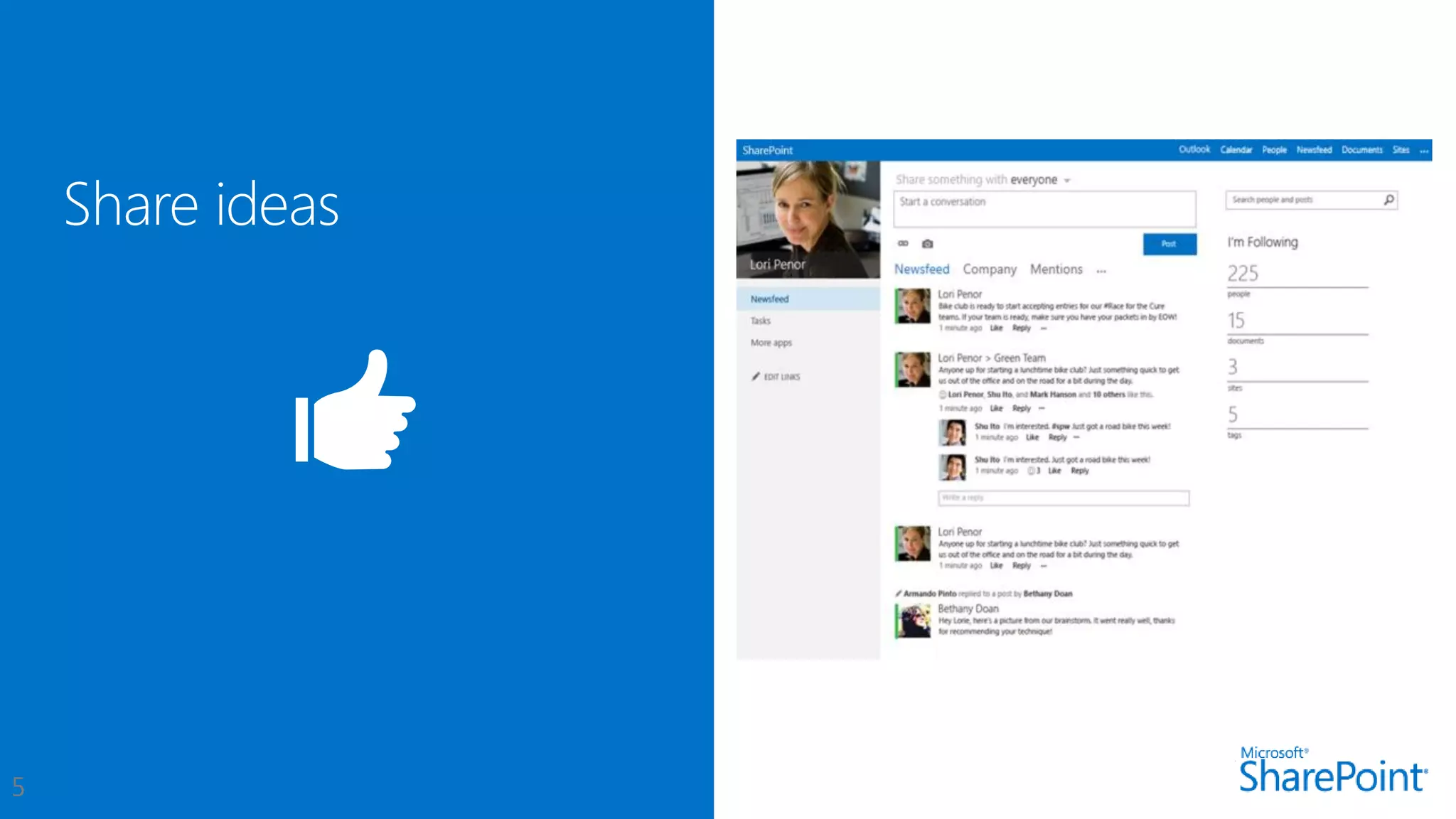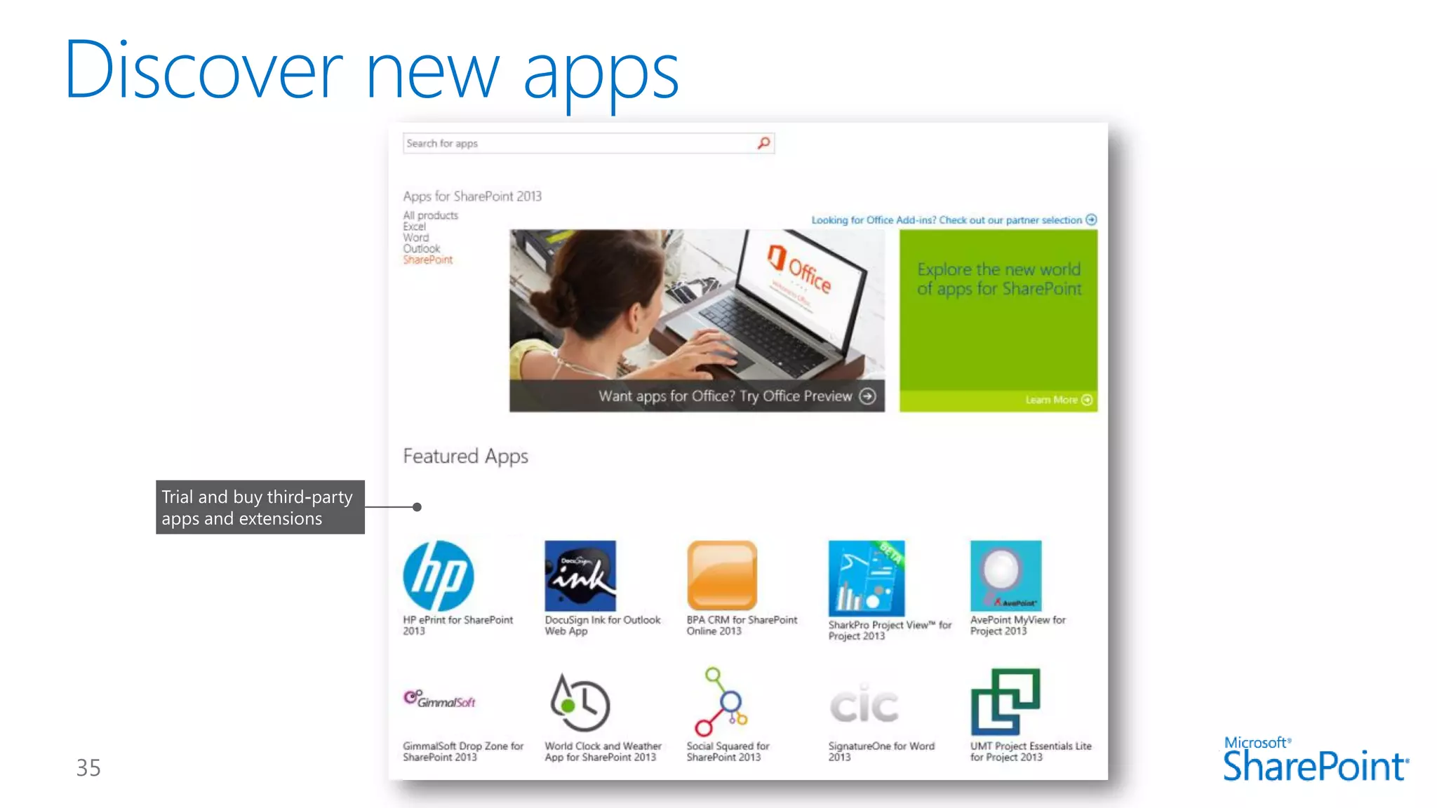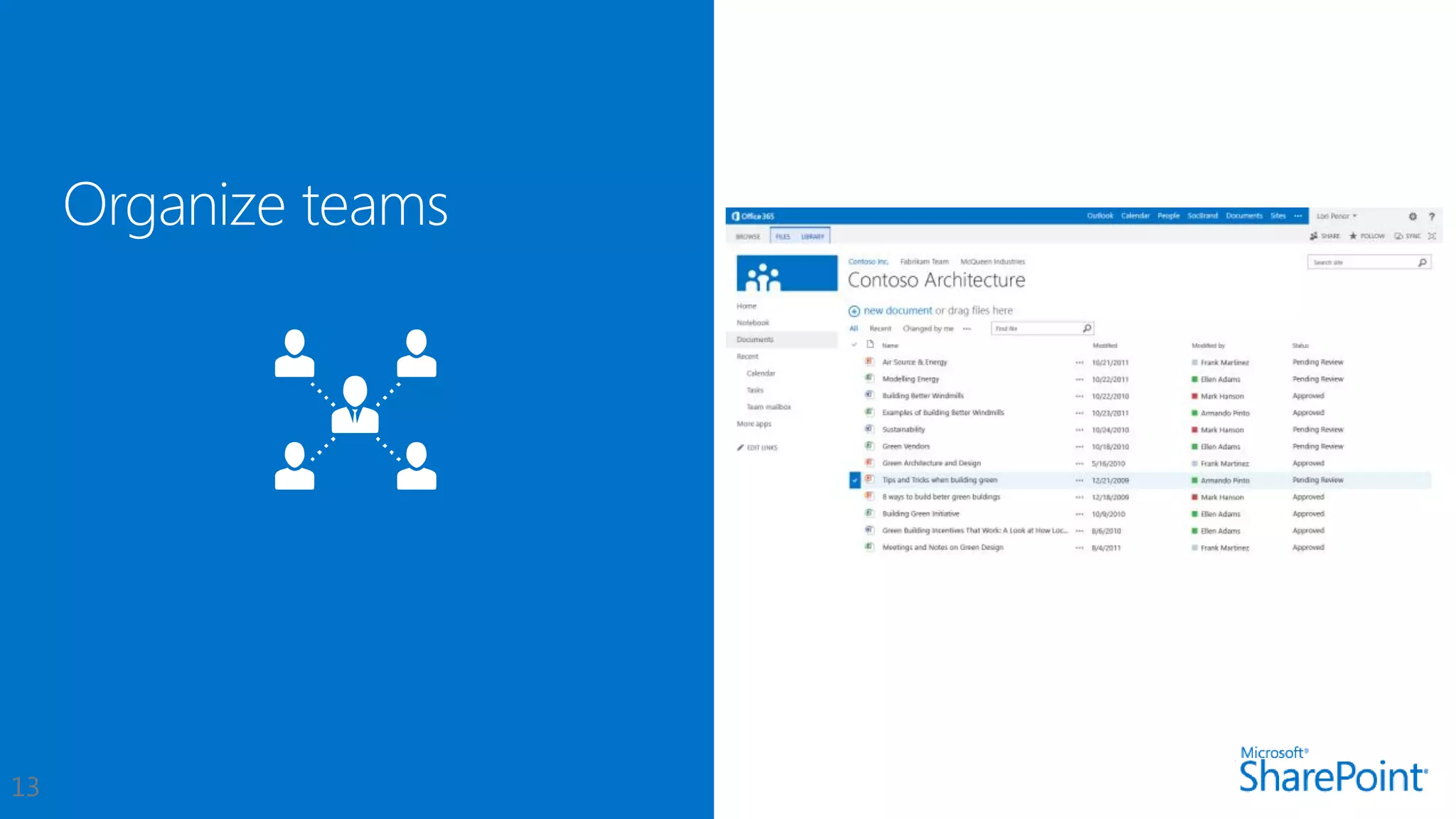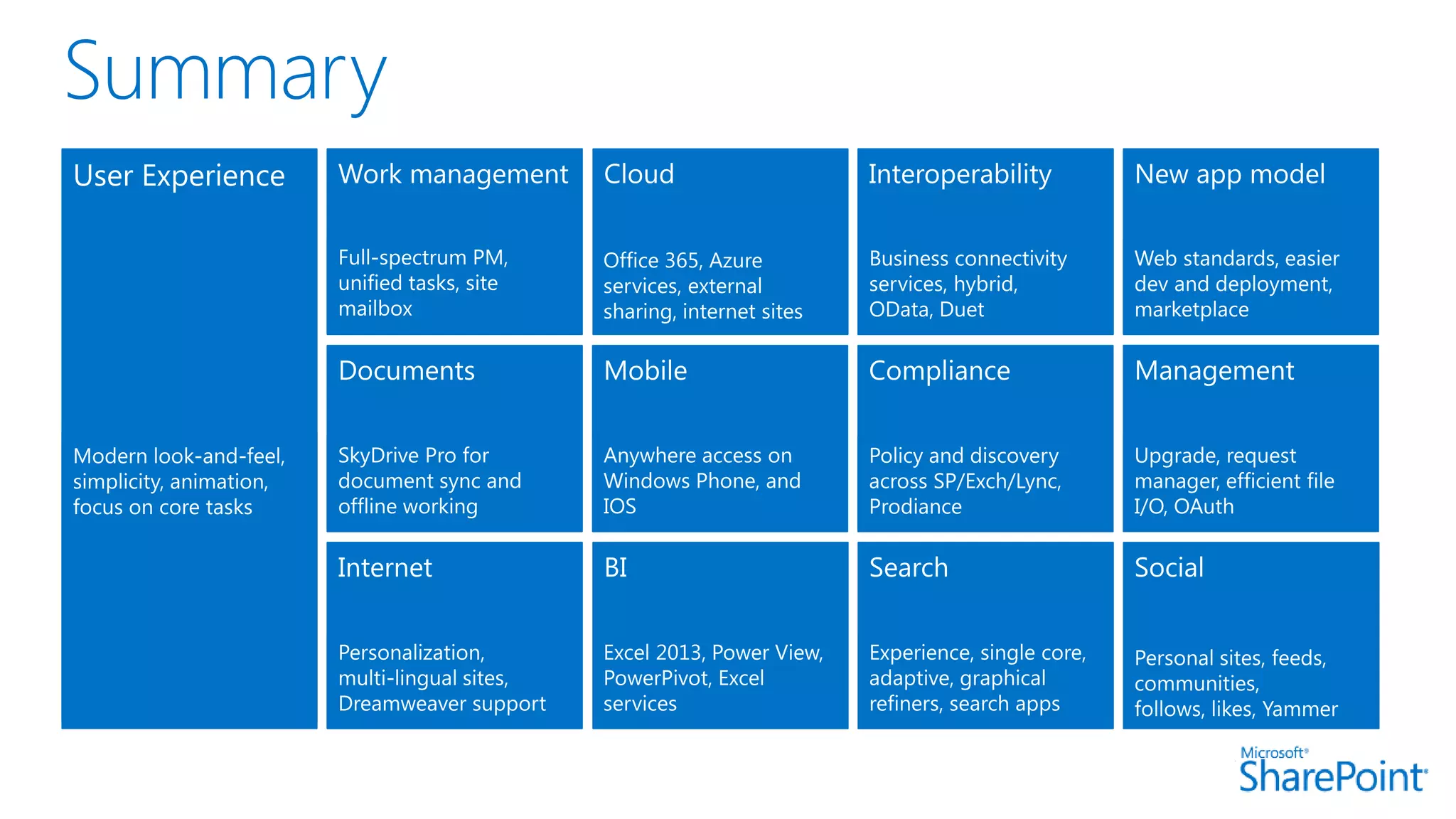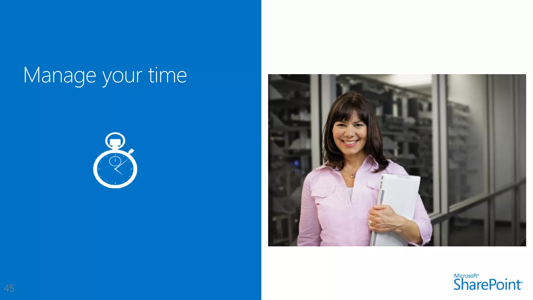 This document introduces new features for collaborating and managing team communications using SharePoint 2013. Key highlights include organizing all team communications in a single place, managing permissions to control access, writing apps that can run on multiple platforms, running SharePoint in the cloud for faster updates and improved performance, and controlling how sites are provisioned for more automated processes. It also provides links to download an evaluation version, learn more about SharePoint, and attend an upcoming SharePoint conference.