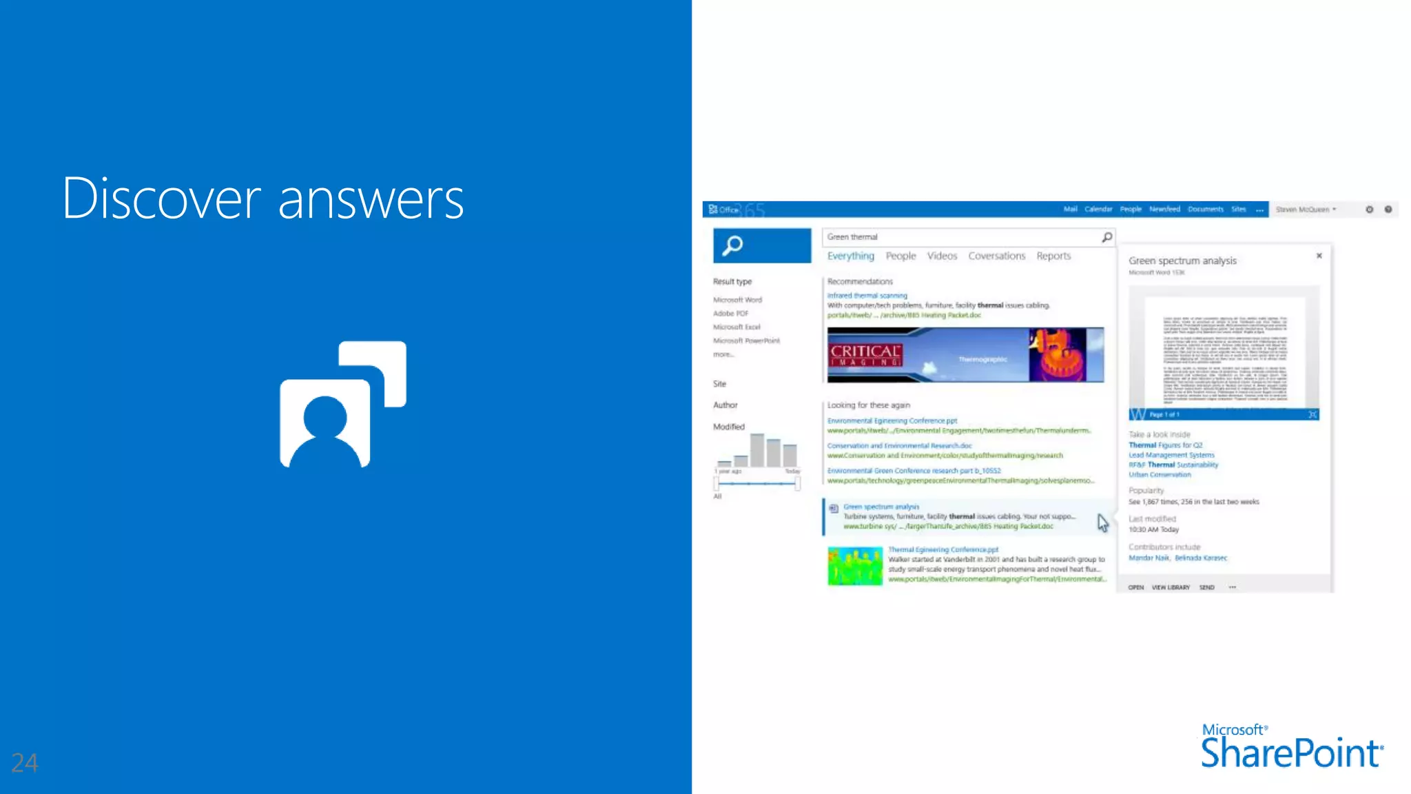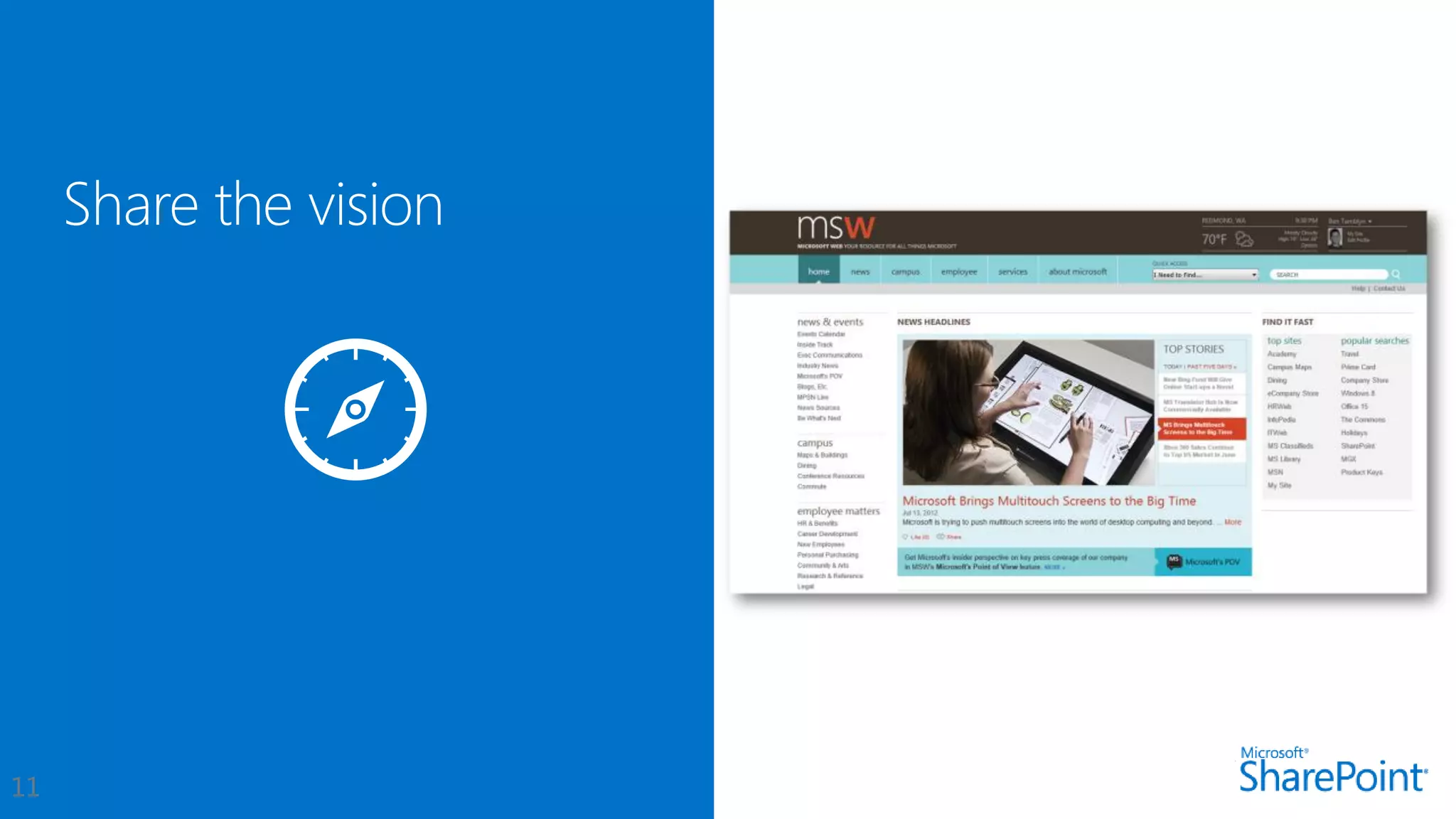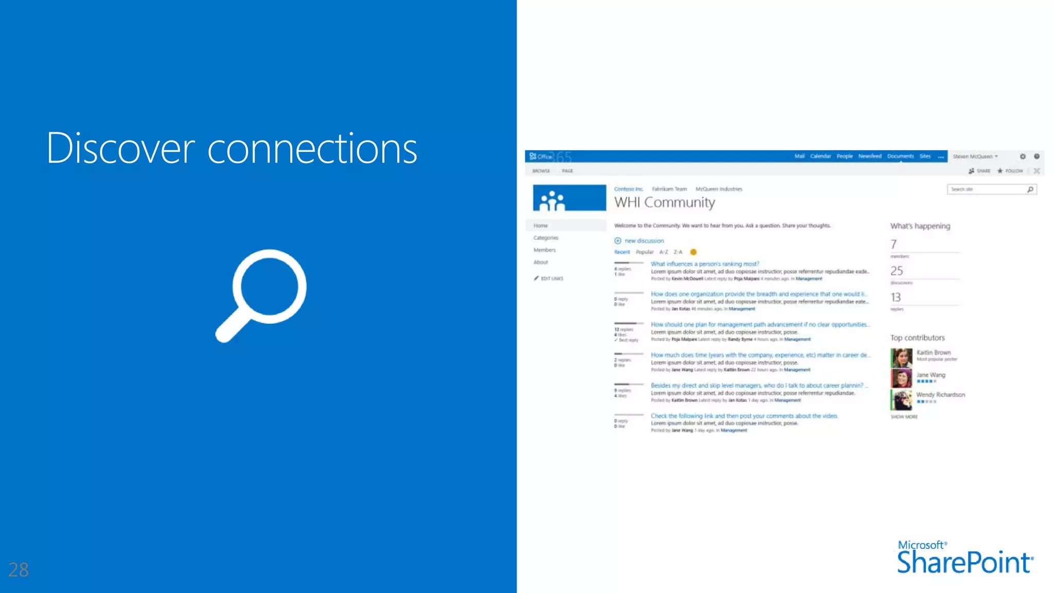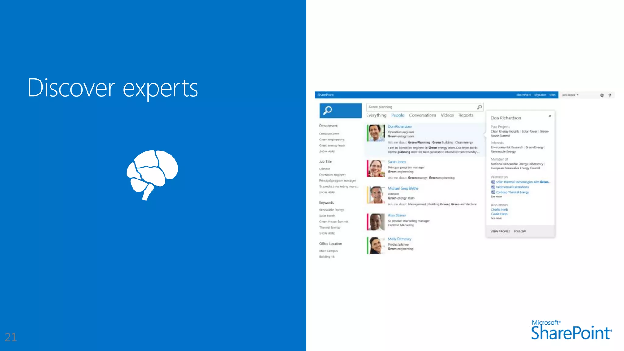 This document introduces new features for collaborating and managing team communications using SharePoint 2013. Key highlights include organizing all team communications in a single place, managing permissions to control access, writing apps that can run on multiple platforms, running SharePoint in the cloud for faster updates and improved performance, and controlling how sites are provisioned for more automated processes. It also provides links to download an evaluation version, learn more about SharePoint, and attend an upcoming SharePoint conference.