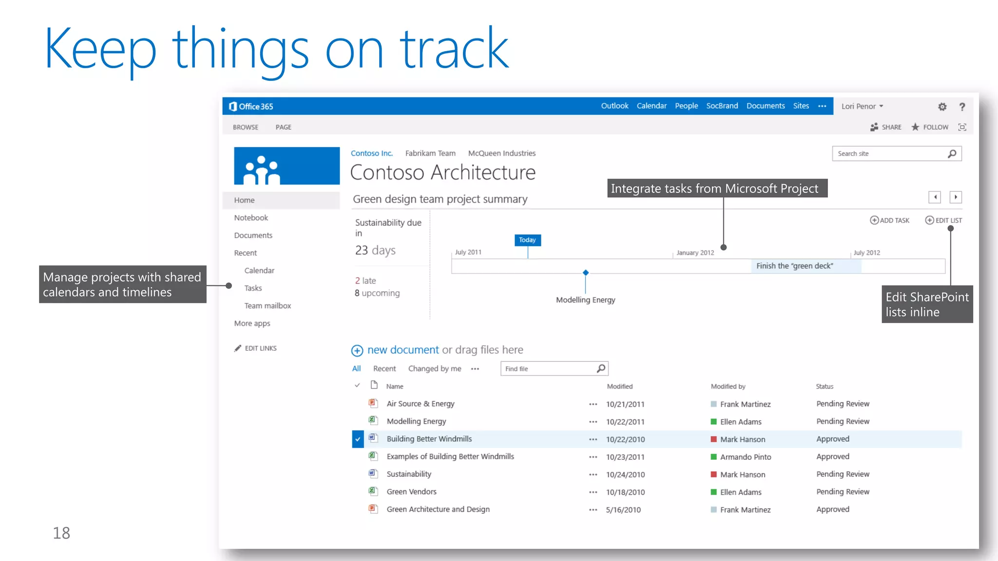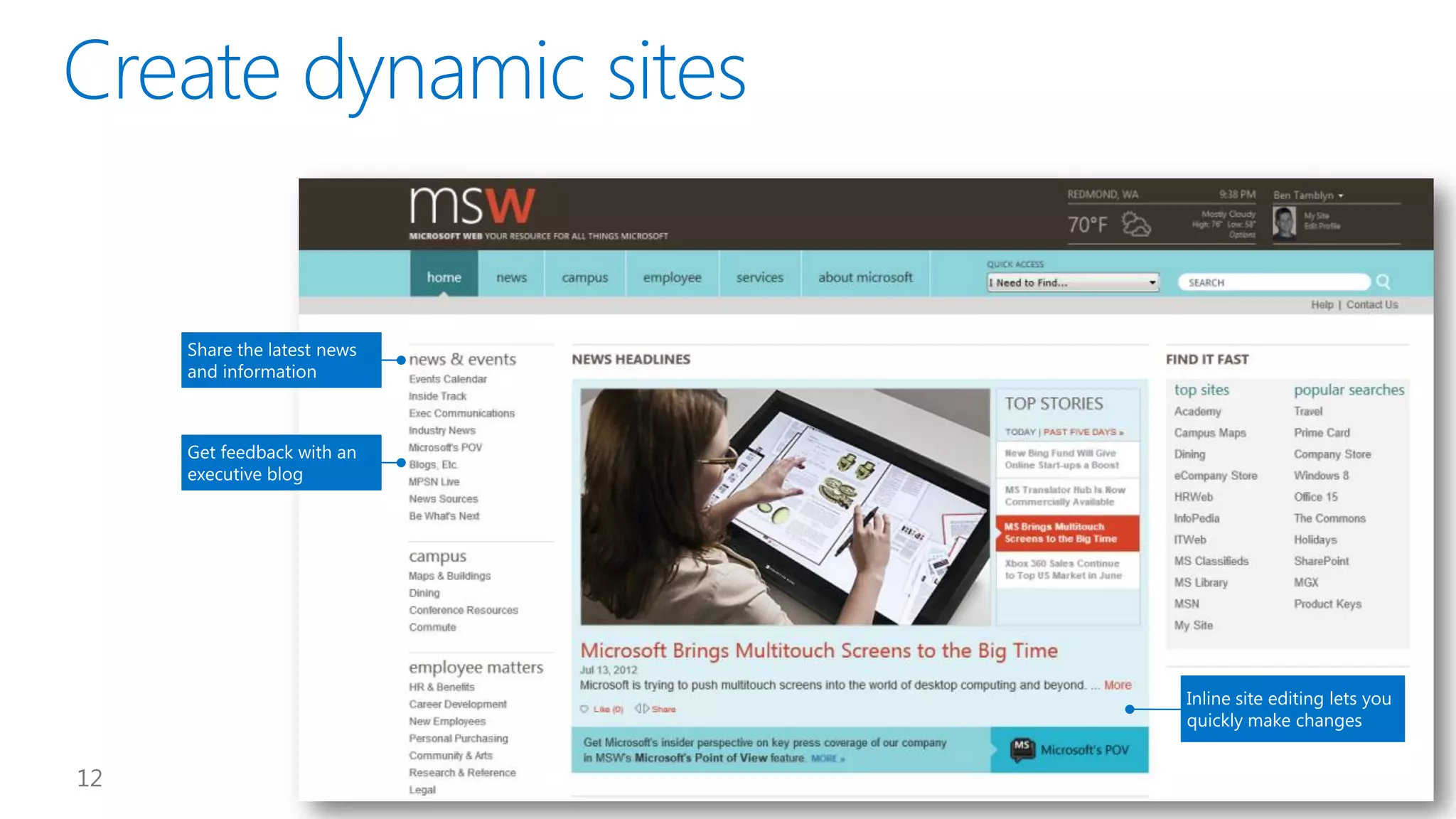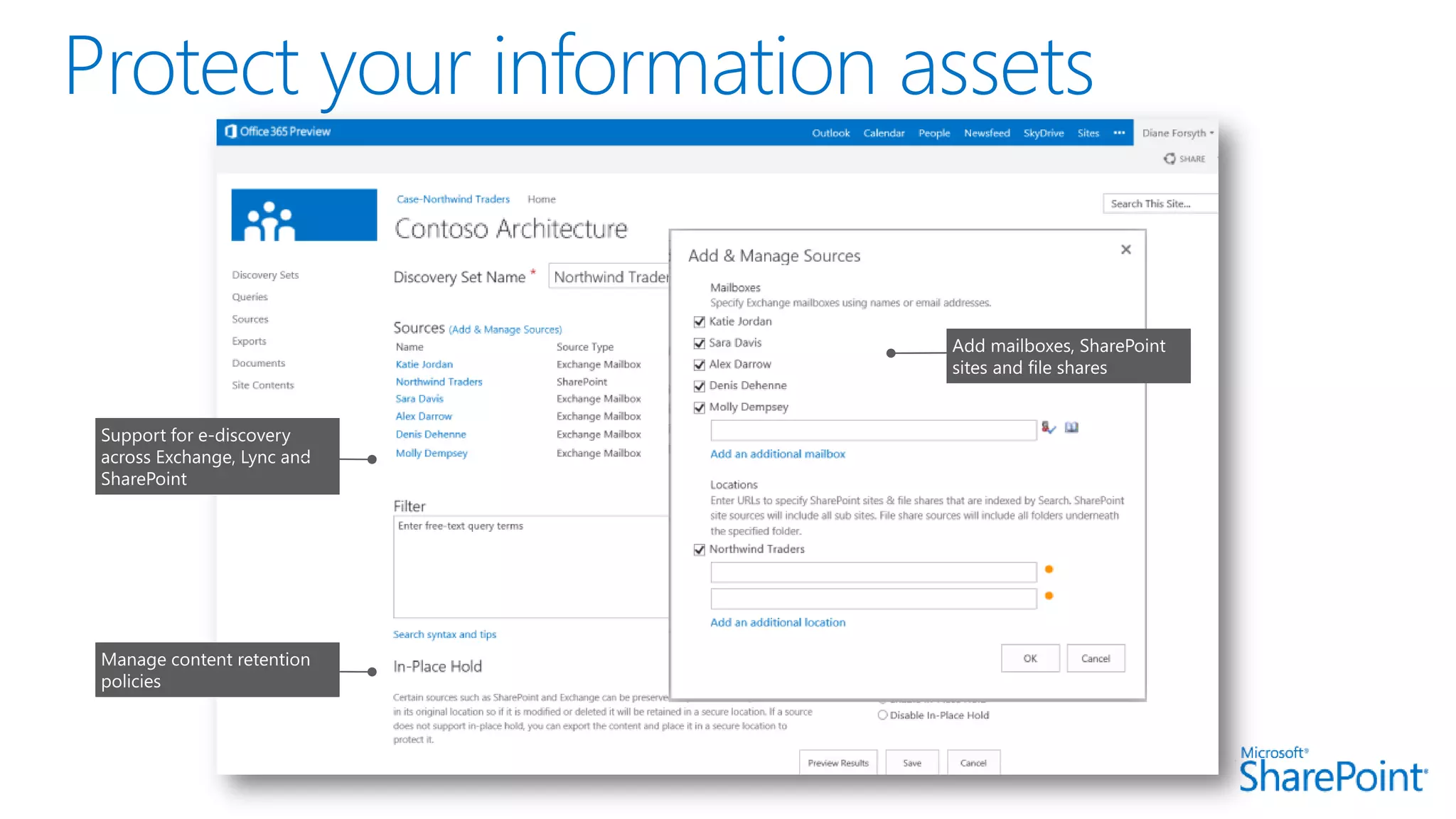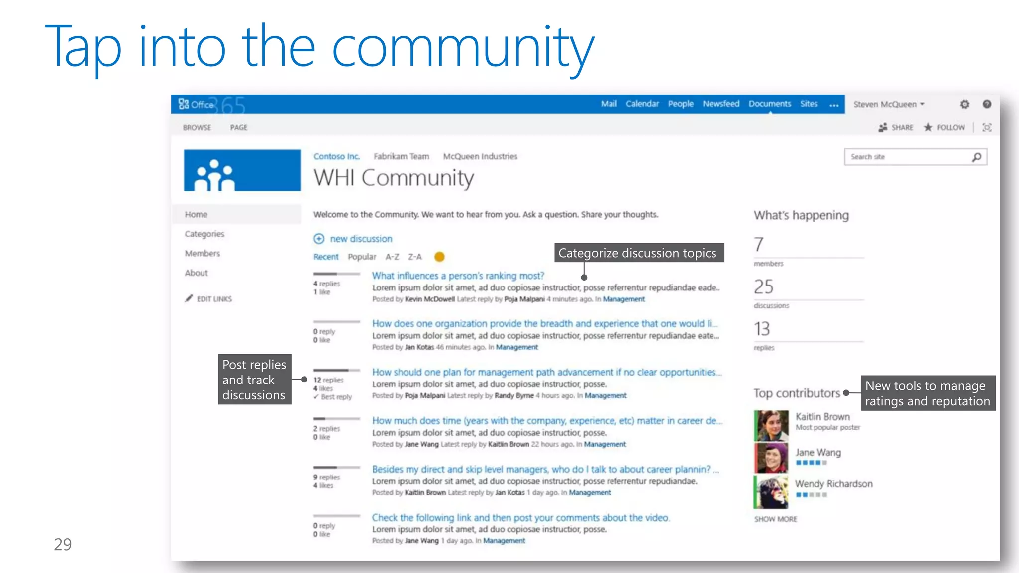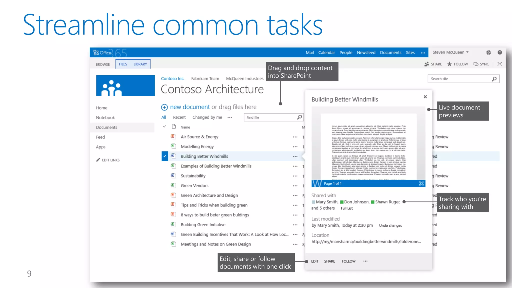 This document introduces new features for collaborating and managing team communications using SharePoint 2013. Key highlights include organizing all team communications in a single place, managing permissions to control access, writing apps that can run on multiple platforms, running SharePoint in the cloud for faster updates and improved performance, and controlling how sites are provisioned for more automated processes. It also provides links to download an evaluation version, learn more about SharePoint, and attend an upcoming SharePoint conference.