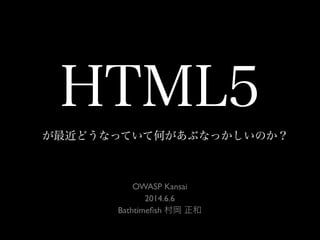 HTML5 が最近どうなっていて何があぶなっかしいのか? OWASP Kansai 2014.6.6 Bathtimefish 村岡